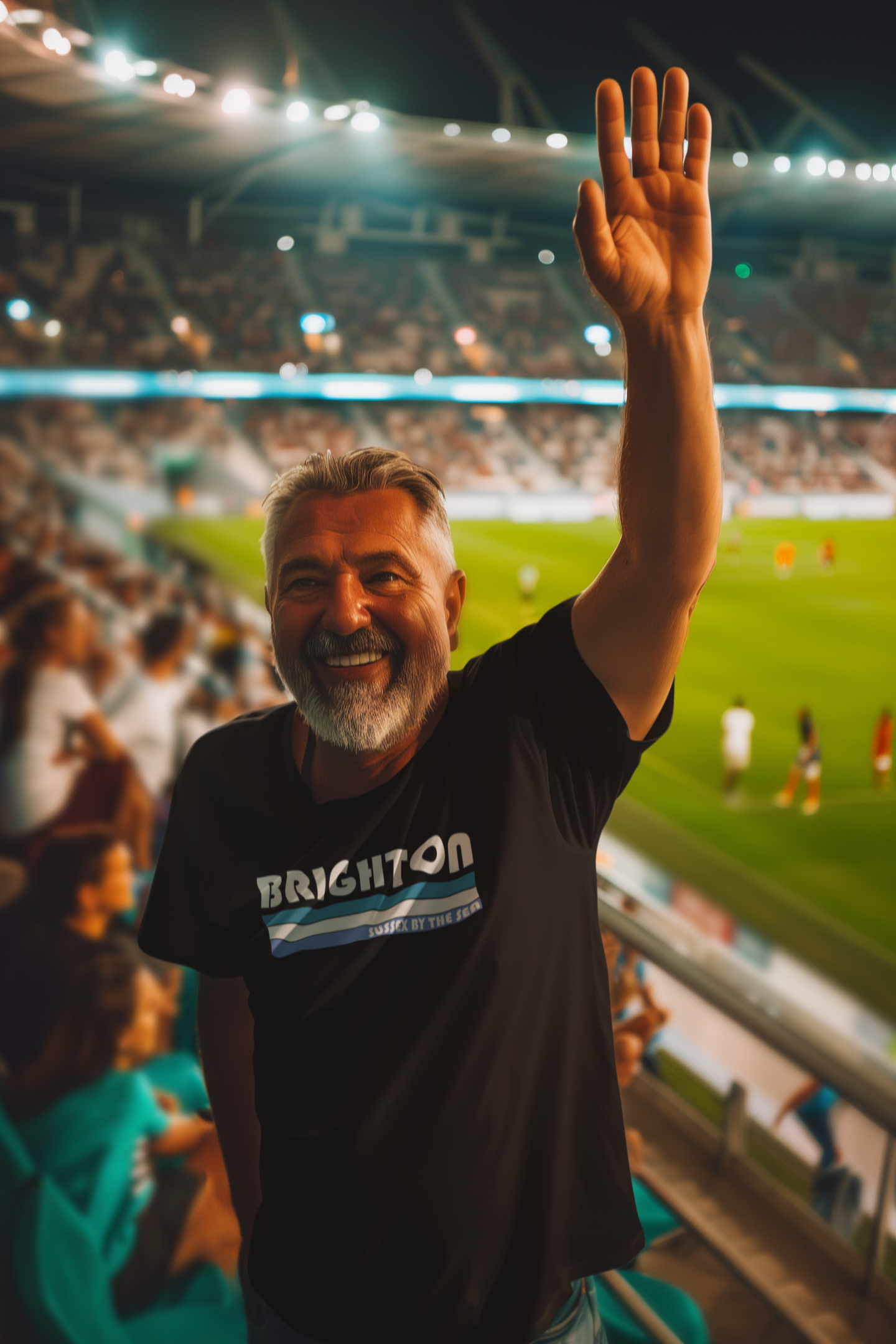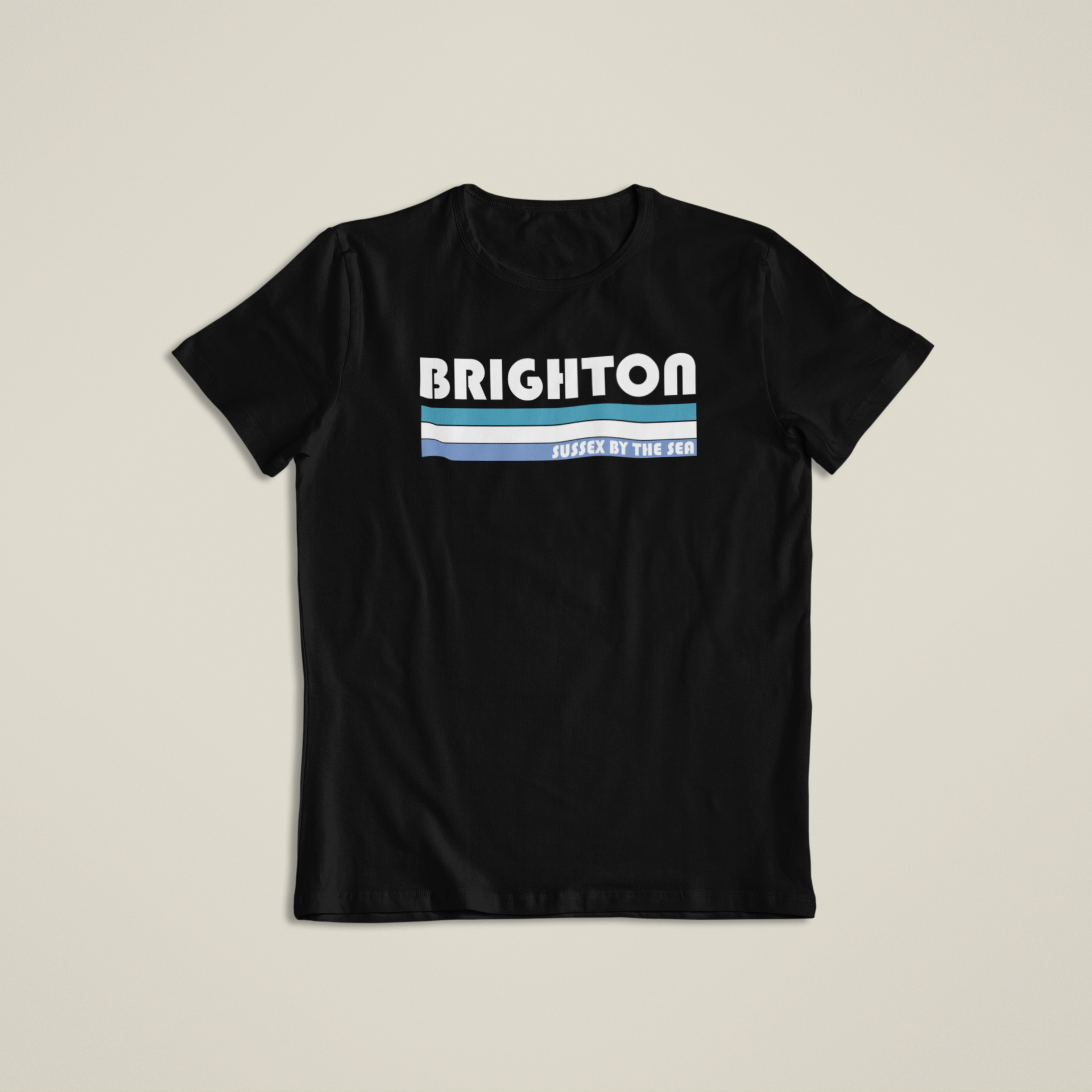 A classic T shirt printed across the chest with the Brighton 3 Stripes Logo