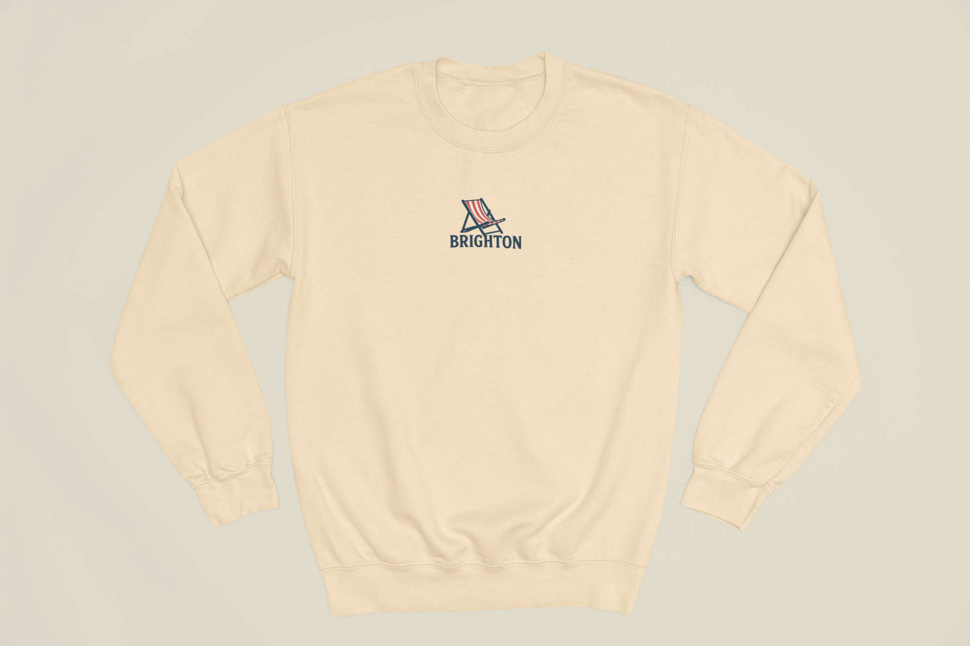A classic crew-neck sweatshirt printed on the middle chest with the Brighton Deck Chair logo
